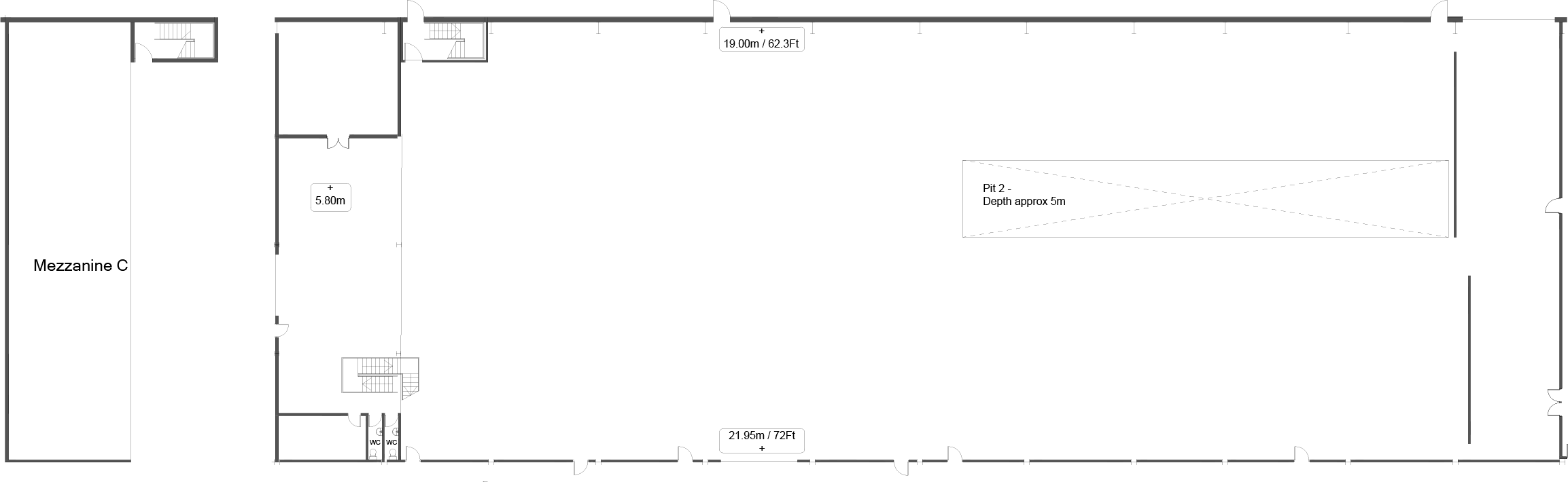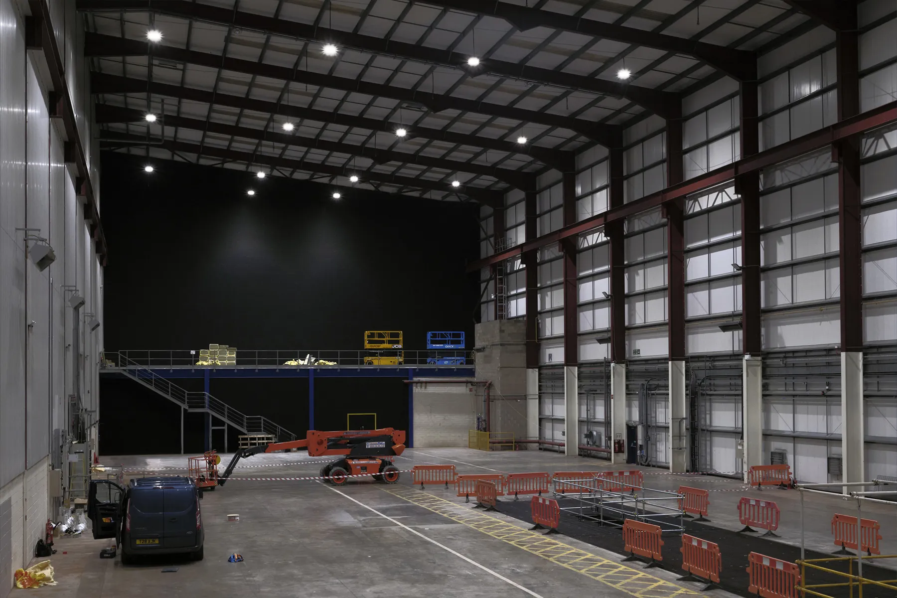 24,294ft2 / 2,257m2Includes a 82ft/25m L, 16ft/5mW, 16ft/5m-depthbuild down space/pit, with removable covers rated to 5kN/m2.The pit can be filled for water work.View Specifications tab for full details