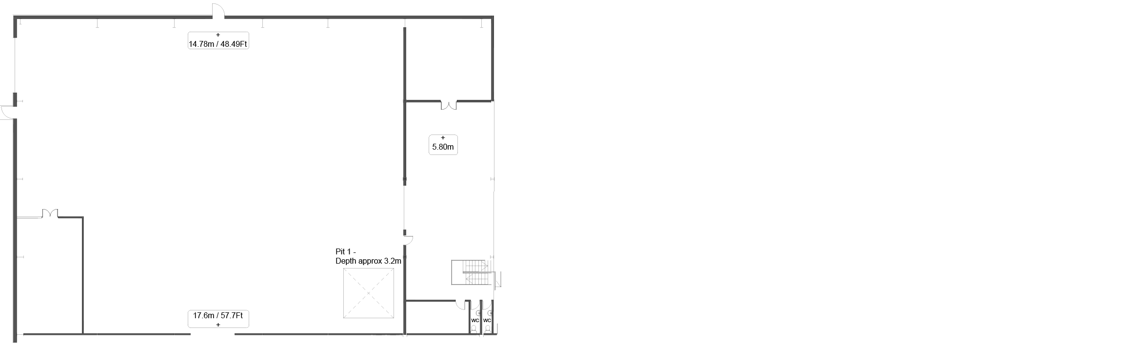 24,294ft2 / 2,257m2Includes build down space/pit, with removable covers. The pit can be filled for water work.